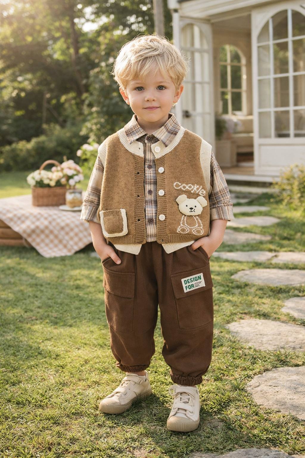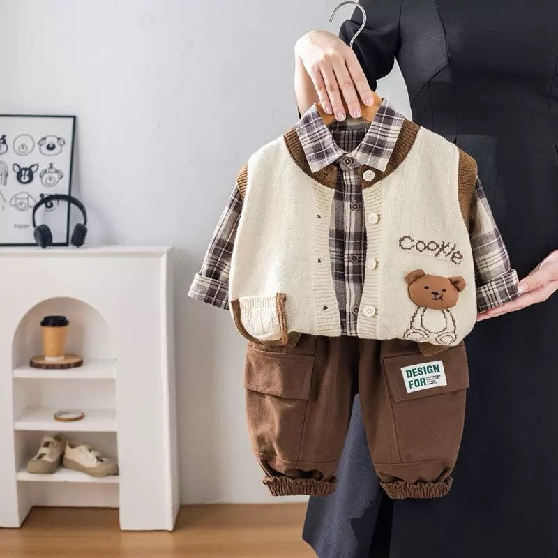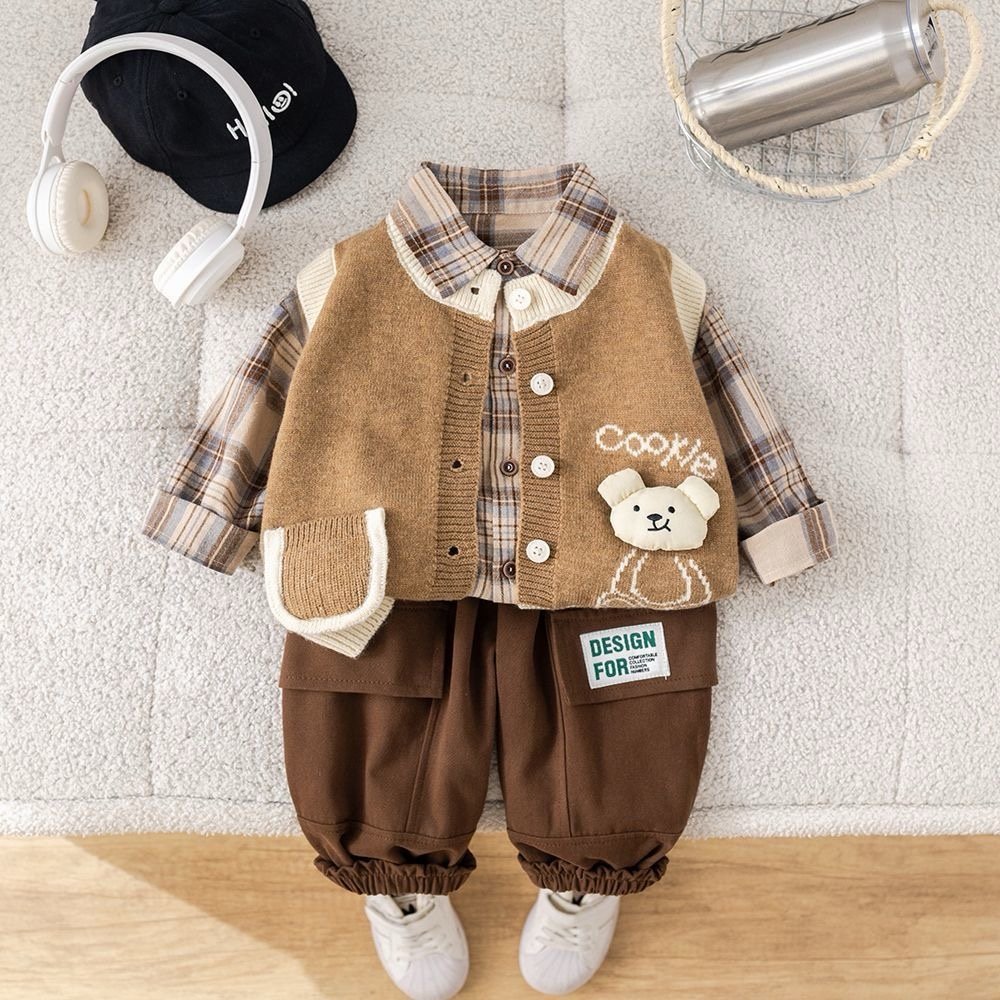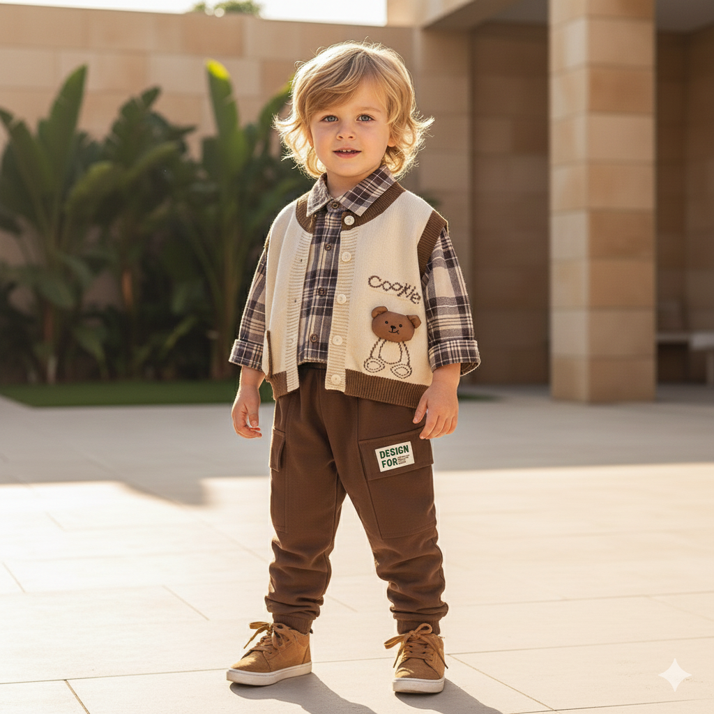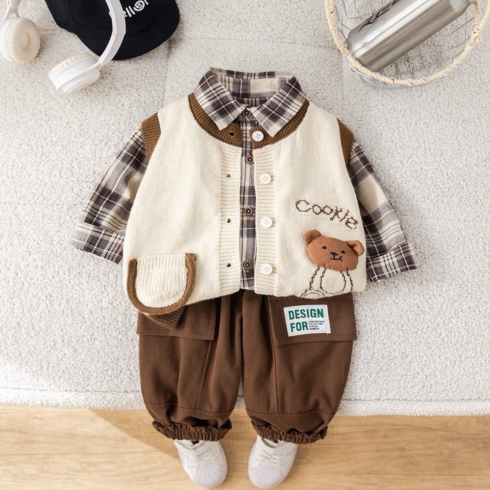 Ensemble 3 pieces garcon cookie ponpon